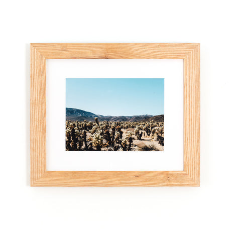 This solid Ash wood frame's natural blonde color with gray undertones is absolutely stunning with its heavy grain. The wide profile is perfect for large-format landscapes and outdoor photography.