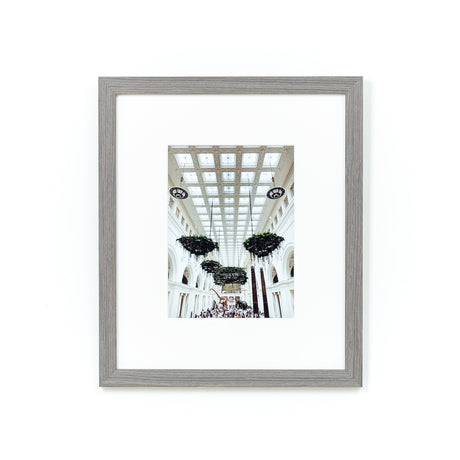 A cool matte gray frame with subtle white grain and slim profile. The finish perfectly accents black and white photos, but we love it for outdoor and woodsy scenes too.