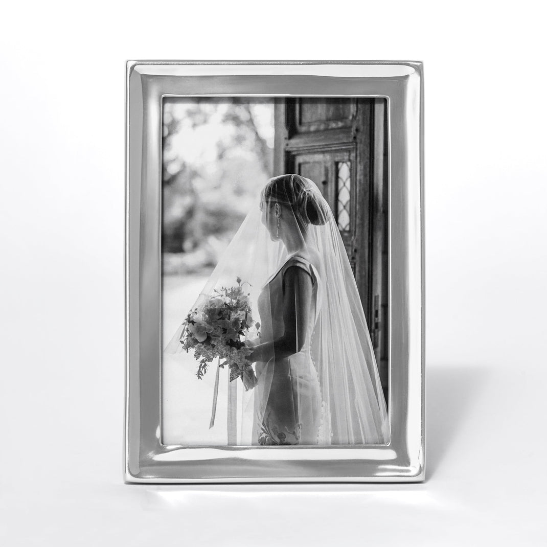 Handcrafted from recycled materials, this versatile tabletop frame has an elegant enamel finish edged in gleaming silver, featuring slight variations for a truly one-of-a-kind look. A chic and easy way to celebrate your brightest moments, The Regalo is designed with a removable back so it's simple to update the photo anytime you want to frame something new. It arrives beautifully packaged in a luxe gift box with bow, making it a stunning, thoughtful gift.