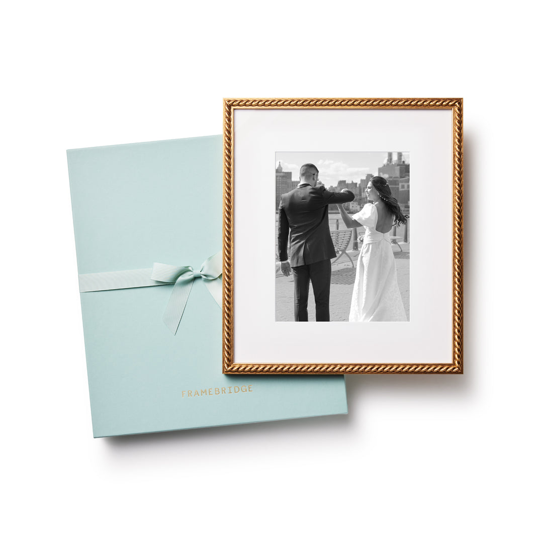 This is Framebridge's most popular size frame for wedding and baby photos in our most popular colors. This personalized gift is a sophisticated Holiday choice for your parents, siblings, or friend who just got married.